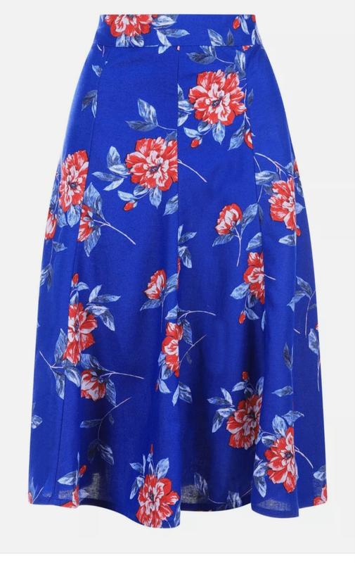 Качественная миди юбка в цветочный принт из льна, вискозы и хлопка