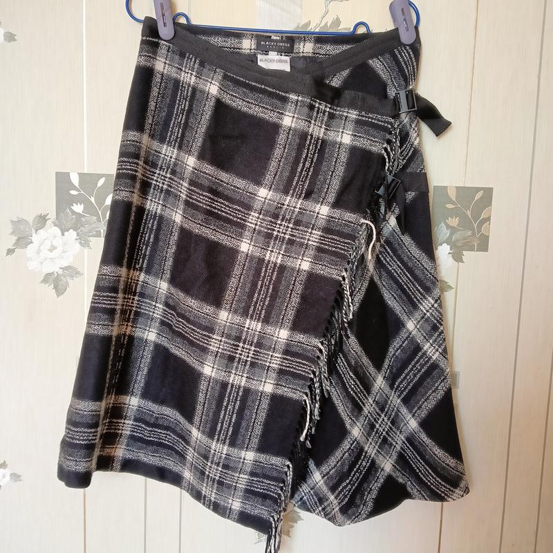 классная юбка в черно- белая клетка фирмы Blacky Dress Berlin, на запах, декорирована бахромой и интересными средством, есть подкладка. НОТ 37 см