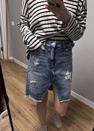 Стильная джинсовая юбка с разрезом На размер С Состояние идеал