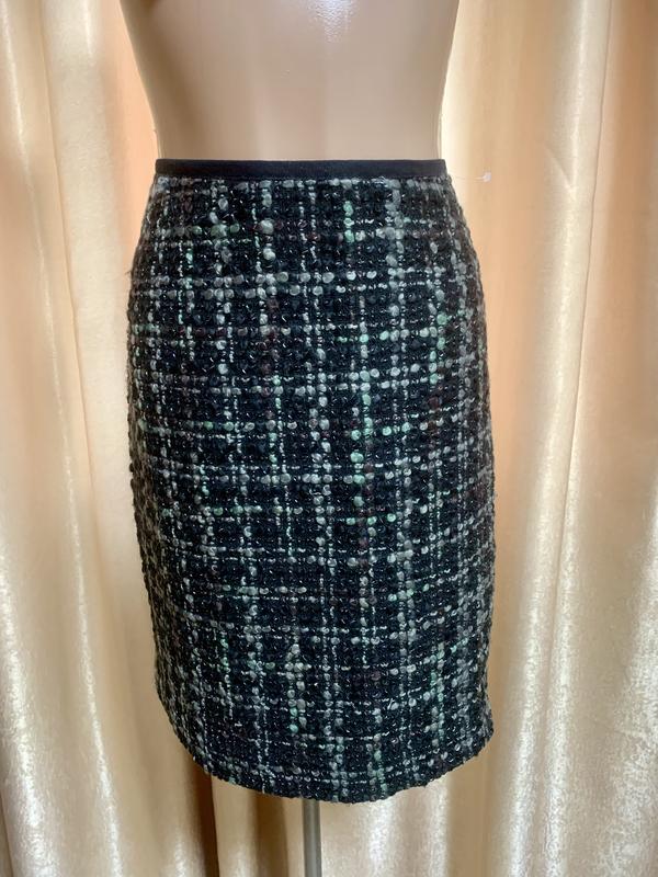 Юбка теплая буклированная черно- оливковый Street One размер L Длина 51см Полуобхват талии 41-42см Полуобхват бедер солнце, по подкладке 52см Внизу по краю 51см Б/в, идеальное состояние Застежка молния сзади На подкладке Сезон зима/ холодная осень / весна Состав: 59% полиакрил, 31% полиэстер, 7% вискоза, 2% хлопок, 1% нейлон подкладка - 100% полиэстер