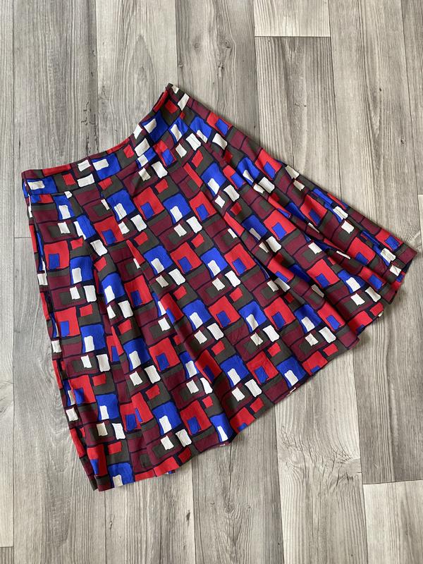 Легкая юбка клеш с абстрактным принтом Известный качественный Британский бренд Размер 12, ткань легкая летняя Есть скрытая молния, без подклада Кольори насичені