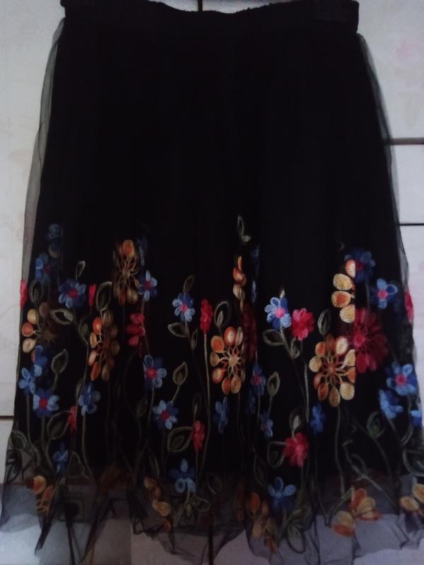 Юбка тюль с машинной вышивкой, пояс на резинке.Талия 72см, чехол по бедре 60см, длина 65см
