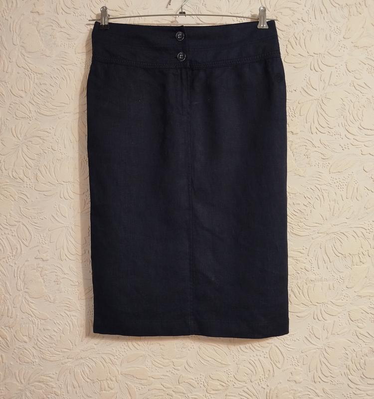 Лляна чорна спідниця олівець. Легка і приємна на дотик. Нажаль бірка з складом обрізана. Довжина 63 см, пот 37 см, поб 44 см