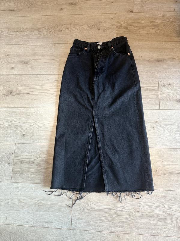 Джинсовая юбка-миди mango. Размер Xxs. Прямая. Джинс плотный, серо-черного цвета. Состояние очень хорошее.