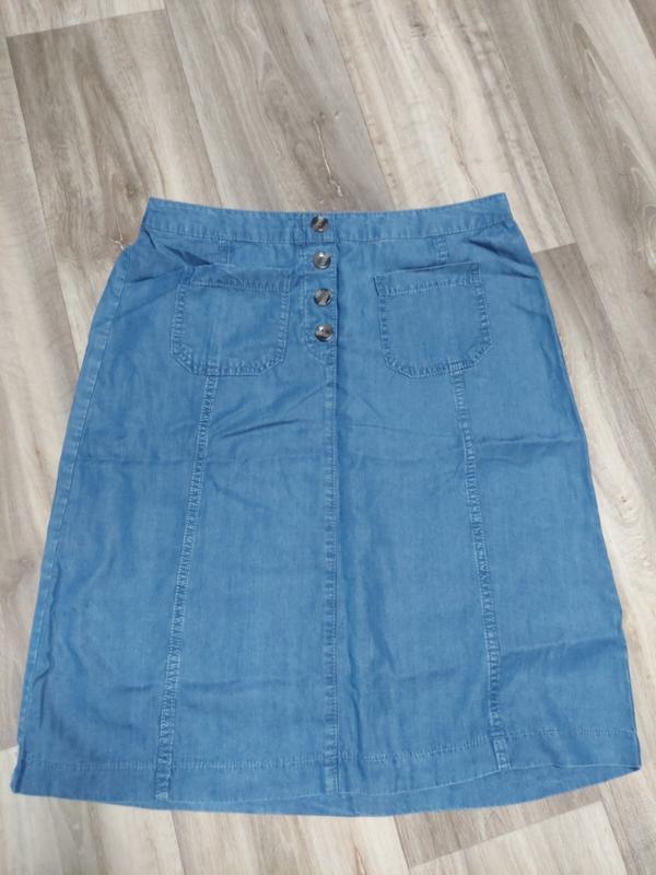 Юбка коттоновая, легкая и стильная. Спереди пуговицы (не расстегиваются) и два кармана. Сзади на талии резинка. Пол ОТ 44- 52, ПОБ 60. Длина 64