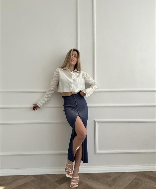 Жіноча спідниця в рубчик в синьому кольорі. Нереально красиво виглядає на тілі😍 Розмір М, може бути і на S