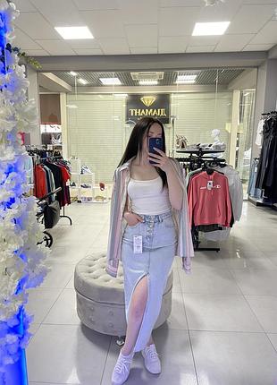 Світло-блакитна джинсова спідниця-міді бренду VONNAVI. • Модель: Класична спідниця з високою посадкою. • Деталі: Пояс з петельками під ремінь, застібка на ґудзики (видимі 4 металічні гудзики), спереду акуратний розріз для зручності під час ходьби. • Завершення низу: необроблений край із легкою бахромою. • Покрій: Прямий, добре підкреслює фігуру. • Ззаду: Дві класичні кишені. • Колір: Світлий блакитний денім. • Розмір: 40 Дуже стильний варіант для весняно-літнього сезону — поєднується як з кедами, так і з босоніжками.