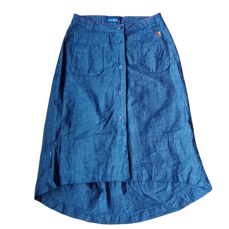 оригинальная джинсовая юбка французского брэнда. без нюансов и дефектов длина сзади 82 см, спереди 62 см пот 36 см поб 54 см цвет реальнее на 4ом фото