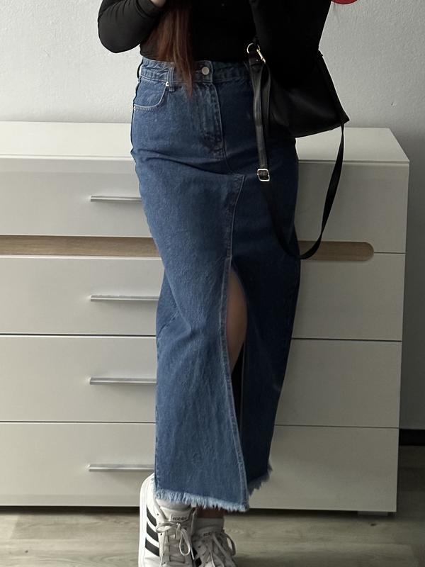Джинсова довга спідниця з розрізом посередині, розмір 36
