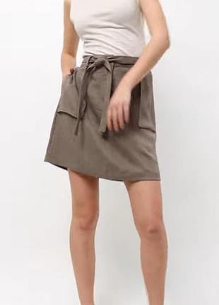 юбка с однотонным узором и поясом для женственного классического образа - Цвет мокко - Высокая талия - Обычный крой - Застежка на пуговицы и молнию спереди - Шлевки для ременя та пояс - 2 боковых кармана - Материал 63% лиоцелл, 31% вискоза и 6% полиамид, непрозрачный, легкий и слегка эластичный