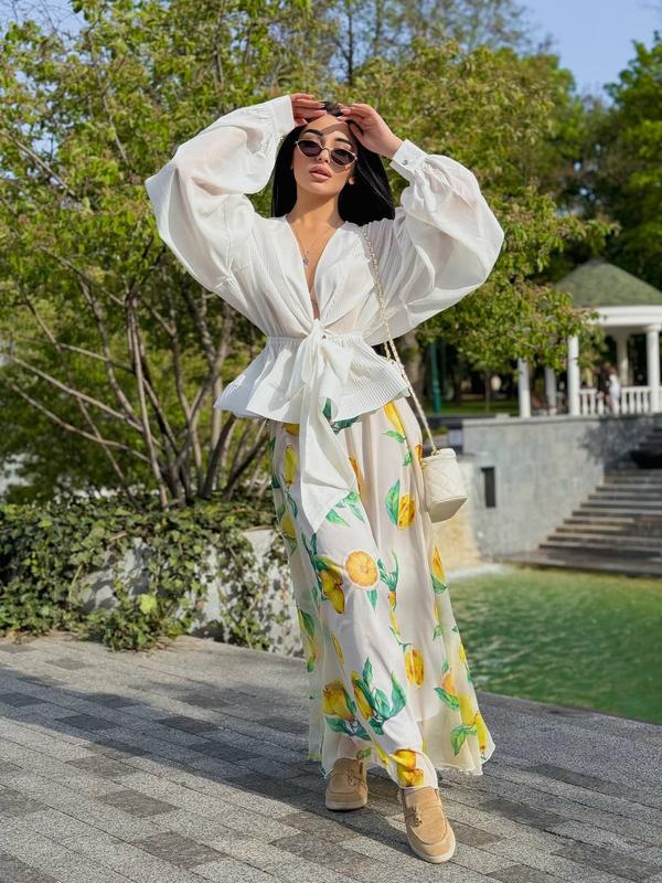 Юбка лимоны на подкладке Мод 2109 Ткань шифон Турция Подкладка микро масло Цвет бежевый шифон принт лимоны Размер универсальный 42-46 Длина 100 см Талия резинка тянется