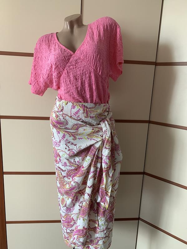Дуже красива спідничка,розмір S-M(вказаний S)100% віскоза,нова,без паперової бірки Довжина 85см,пот 37см,поб 48см.позаду замок.
