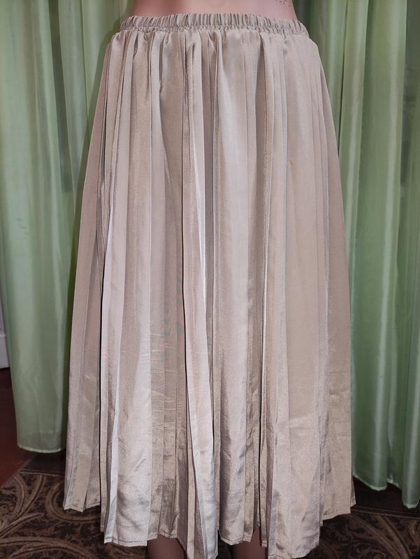 Юбка гофре оливкового цвета, миди, полиэстер. Длина изделия 70 см, полкруг по поясу 34- 40 см ( на резинке), полукруг бедер свободно ( солнце-клеш).