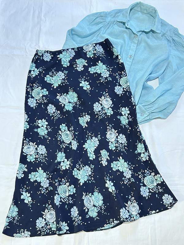 Женская синяя юбка-миди в цветочный принт, летняя цветочная юбка на резинке, размер l/xl