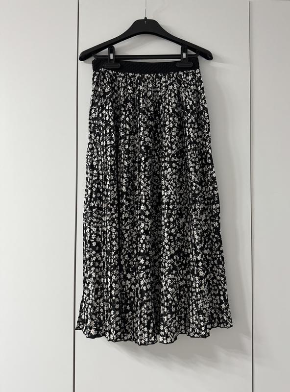 Плісована спідниця з квітковим принтом -Тканина: софт -Пояс на резинці -Довжина міді 📐Розміри: S - M 🎨Кольори: чорний