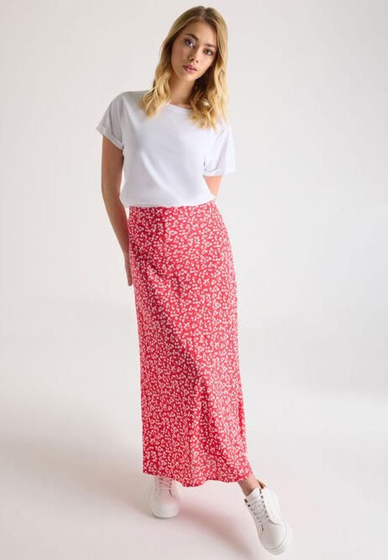 Червона спідниця міді квітковий принт стильна спідниця міді з віскози