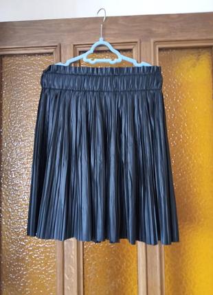 Шикарная юбка,полиэстр с полиуретановым покрытием.Длина-45,в поясе-31.Пояс на ризинках, растягивается.Можна одевать как на праздник, так и на каждый день.