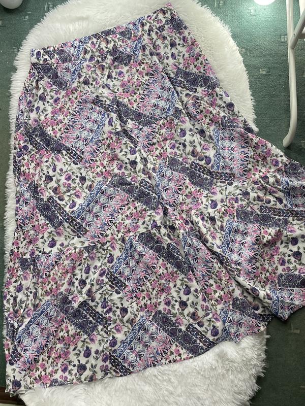 Женская натуральная юбка миди в принт цветов Идеально на лето, без недостатков и нюансов ПОТ- 43 см, тянется за счет резинки до 55 см, ПОБ- 70 см, длина юбки- 87см. Состав ткани: 100% вискоза.
