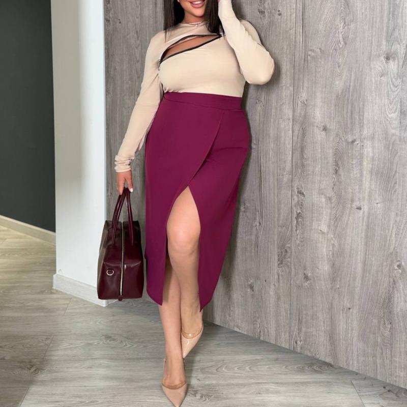 Изысканная деловая юбка миди с разрезом с поясом, юбка