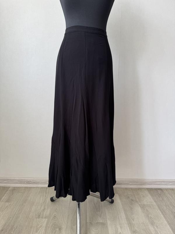Спідниця довжини міді, чорного кольору На розмір Л У складі 100% віскоза Є підклад Довжина 88 см, напівобхват талії 40 см, напівобхват стегон 57 см Стан ідеальний