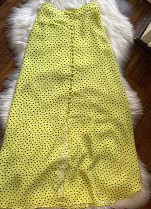 Красивая юбочка от Mango. Цвет яркий и насыщенный желтый. Прикрашена ґудзиками. Размер S, небольшой M. Стан - идеальный.