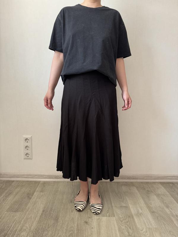 Спідниця чорного кольору з ідеальним складом 😍 Розмір Л У складі 55%льон, 45% віскоза Довжина 83 см, напівобхват талії 41 см, напівобхват стегон 59 см Стан ідеальний