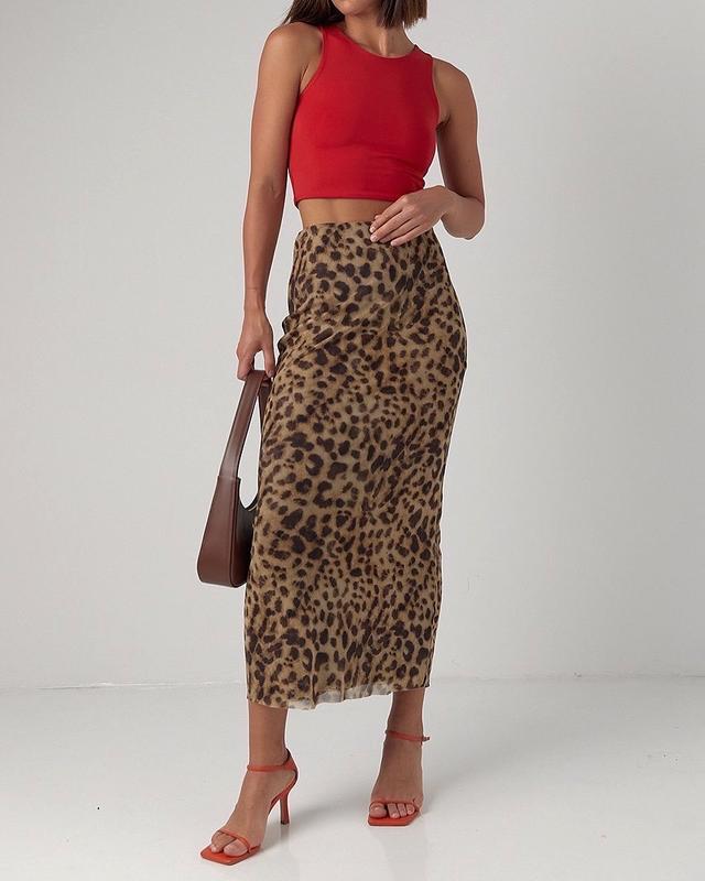 Спідниця міді приталена леопард принт олівець сітка ▫️розміри: S, M ▫️Туреччина Спідниця має всередині два однотонні шари під’юбника із сітки. Усередині пояса вшита тонка резинка із силіконовою смужкою.
