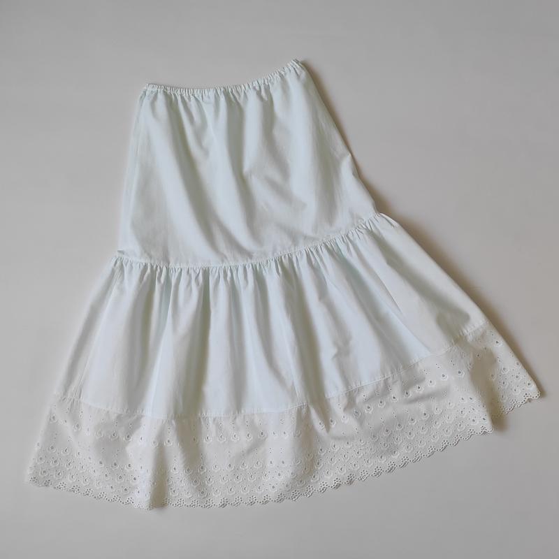 Винтажная нижняя юбка светлого фисташкового цвета с белым кружевом по низу (цвет чуть более зелени, чем на втором фото) Ромир не указан, ориентовано M/L Замеры: ПОТ-35см (резинка), длина-85см Состав: бирка отсутствует, на ощупь хлопок Состояние: идеальный