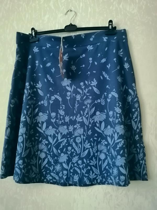 Не делайте автоматические заказы пока не угодно вопрос наличия вещей и срок отправки! Новые и белые вещи на примерку не отправляю только подписку и без возврата. Разгружаю шкаф. Смотрите свои предложения. Много брендовых вещей новых и в состоянии новых или идеального. Красивая, удобная и качественная трикотажная меди юбочка Mantaray (премиального класса суббренд Debenhams), Британия. Новая, с бирками. Указан размер британский 18, подойдет на евроразмеры 46, 48, может 50. То есть на наши размеры 52, 54, 56. По сравнению со своими вещами. 95 % бавовна, 5% еластан. Цвет пепельно синий с рисунками серых одуванчиков, эхинацей и других цветочков. Фасон трапеции, слегка расширенная. Трикотаж средней плотности, очень приятный на ощупь, мякенький, но держит форму, не обвесает и не торчит. Юбка всесезонная: на лето, весну, осень. Легко комбинируется со многими вещами. Пот 49- 50, там резинка, еще потянется слегка. Побеги 69 Длина 65-66.
