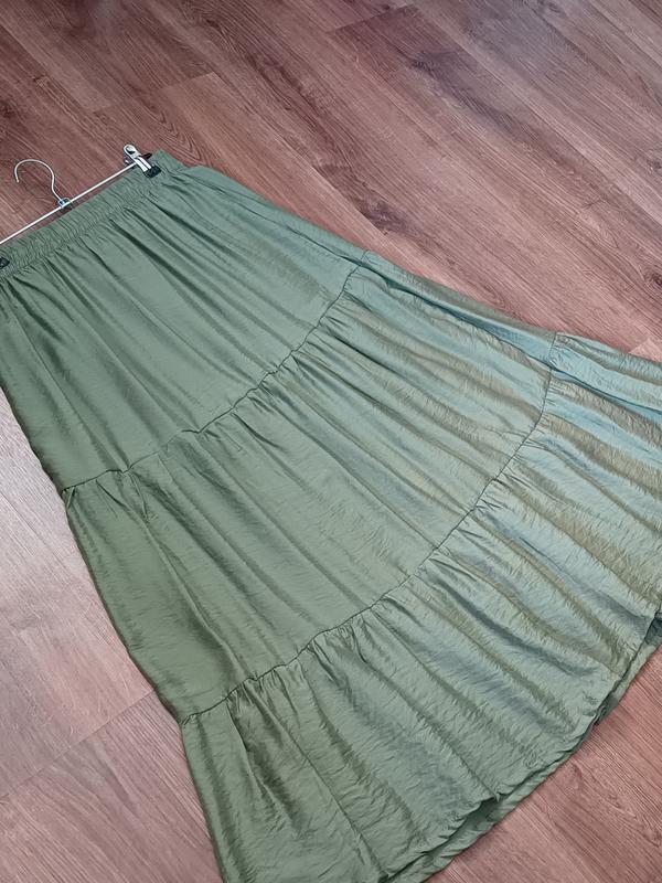 Легкий и приятный на ощупь материал, типа легкой жатки с натуральными волокнами с удобным эластичным поясом материал 87% вискоза, 13% полиамид Размер евро 36 Пот 34, тянется до 42 Поб 54, должно быть свободно Длина 86