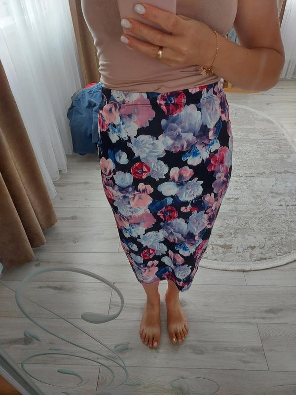 Юбка-карандаш, замеры есть на фото тянется хорошо, на талии резинка, сзади распорка