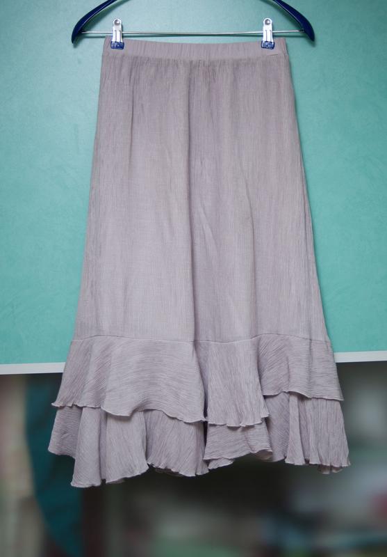 Юбка миди на резинке с воланами светлого серого цвета, материал шифон жатка, есть подкладка. Стан замечательный