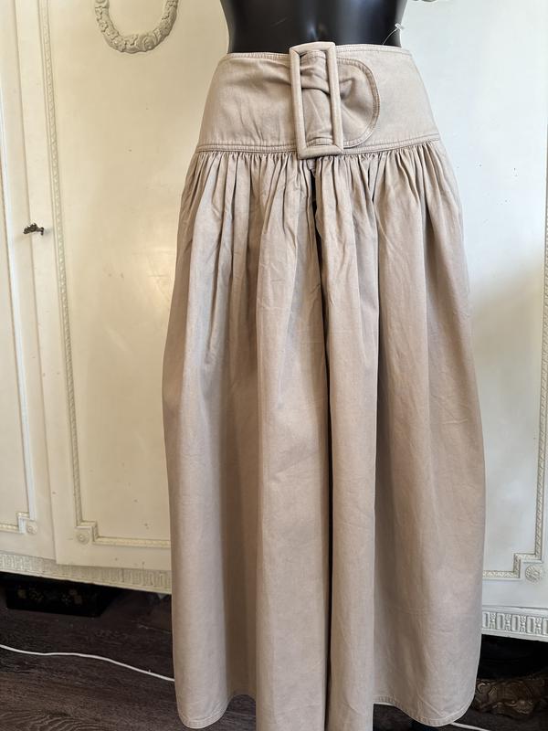 Спідниця MANI by Armani. Склад-котон-100/ Цікава модель, по талії широка пряжка, під нею-застібка на ґудзики, два кармани в бокових швах, спереду-розріз. Розмір по бірці-40. Заміри: довжина-80 см, ПОТ-35 см, ПОБ-40 см. Полотно щільне, добре тримає форму.