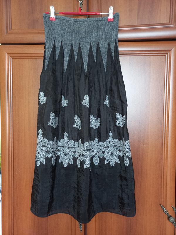 легкая, невесомая юбка с интересным принтом, очень красиво смотрится: можно носить и как классику, и к вышиванию, и на что день, не просвечивается. длина 83 см, бедра до 67, пояс-резинка 32см- тянется. =