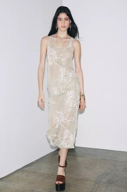 S,M,L Юбка миди с высокой посадкой и эластичной талией. Внутренняя подкладка. Деталь из полупрозрачной ткани с комбинированной структурой.