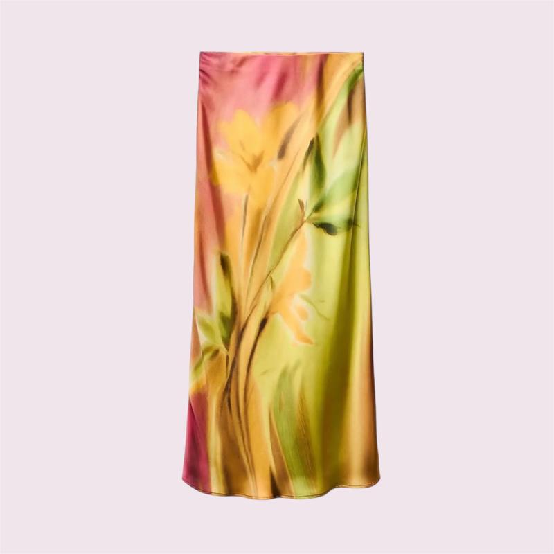 Жіноча атласна міді спідниця з квітковим принтом від Zara. Нова, сток. Талія на резинці. В наявності у розмірі XL. Довжина 88 см ПОТ +-39 см (на резинці), тягнеться на +10 см ПОС 53 см Склад: поліестер 100% Спідниця стокова, має затяжки, в ціні враховано. Можливий торг. Переходьте і підписуйтесь на сторінку, ще є жіночі товари за доступними цінами🥰 Підписникам знижка🩶