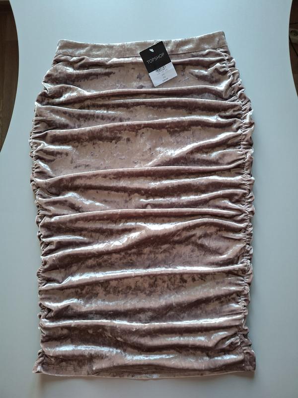 Крутевая велюровая юбка от Topshop На бірці ЦІНА 70$ Игривый цвет не оставит без внимания Цвет неоднозначный, переливается - бежевый + пудра, в зависимости от освещения Застежка на молнию и крючок По бирке размер М Замеры: ПОпояс - 38см ПОБ - 49см ПОниз - 43см Общая длина - 76см Замеры предоставлены в спокойном состоянии Ткань хорошо тянется Состав: 90% полиэстер, 10% эластан Новая с биркой ######### В наличии такая же юбка без бумажной бирки – цена 250 грн