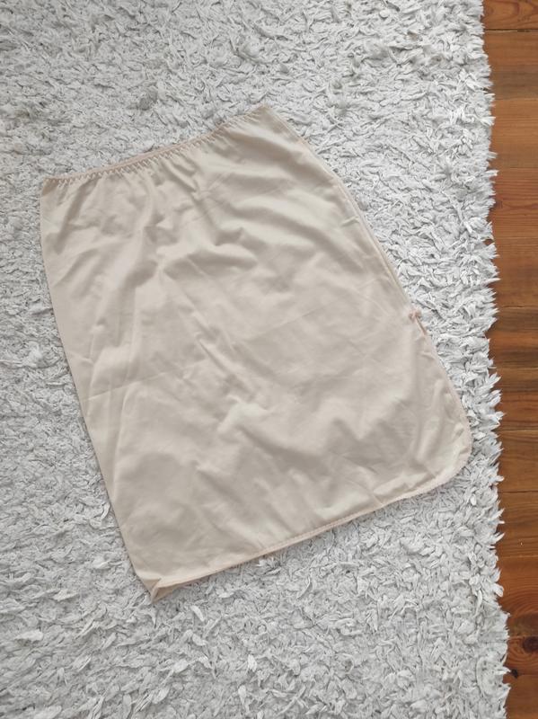 Нейлоновый подьюбник с разрезом 38 р от Размер - 38 Цвет - нюдовый, бежевый 100 % полиэстер (нейлон) Длина - 64 см Пот - 37 см тянется до 44 см Поб - 52 см Длина разреза - 22 см