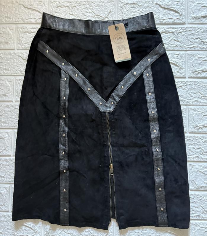 Нова замшева спідниця, має шкіряні вставки. Розмір 42