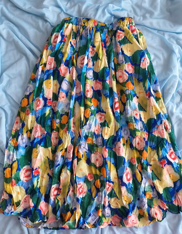 Яркая пышная юбка с цветочным принтом - настоящий взрыв цвета для вашего летнего гардероба! 💐 🔹 Длина: 82 см 🔹 Талия: 64 см (тянется до 92 см) - комфортная резинка 🔹 Фасон: объемная, с эффектом «воздушного шара» внизу 🔹 Материал: легкая, дышащая ткань + есть подклад (не просвечивает!) 🔹 Состояние: новая, не подобралась цвет, потому что принимала по фото (см. 4-5), хотела более зеленую 🔹 Принт: яркие цветы в акварельном стиле 🌺 🔹 Подойдет на размеры: S–M ✨ Идеально сочетается с базовым топом, рубашкой или майкой – для романтичного или бохо образа.