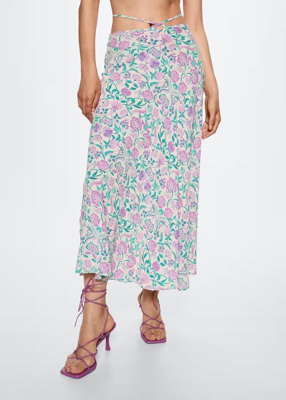 Mango Струмуюча тканина. Квітковий візерунок. Крій нижче коліна. Модель Evasé. Декоративні ремінці. Бічна застібка-блискавка. 100% віскоза XS,S,L розміри