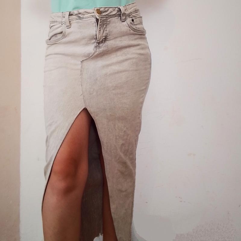 Джинсовая юбка. Длина - 91 см Полуобхват пояса - 40 см. Півобхват бедер - 40 см. Застежка: пуговица+молния. Имеет по 2 кармана спереди и сзади.