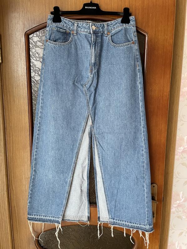Довга спідницю з розрізом з двох сторін . Талія 43 см Бедра 52 см Довжина 101 см