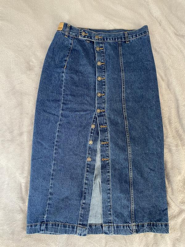 Джинсова довга спідниця з застібкою на ґудзики, кольору синього. Класно сідає по фігурі. Розмір 42