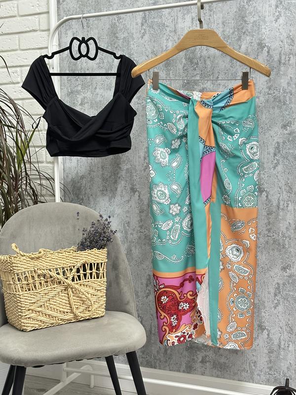 Легка спідниця SHEIN з розрізом спереду з принтом пейслі, розмір L, маломірить, буде краще на М. Стан ідеальний.
