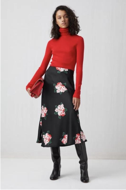 Спідниця міді з квітковим принтом від Arket, розмір 38 але дивіться заміри: Довжина 90 см. Півколо таліі 36 см (резинка трохи тягнеться) Півколо стегон 46 см. Склад поліестер , застібка блискавка , стан ідеальний на питання відповім