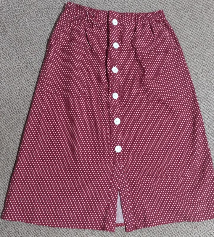 Женская юбка в горох летняя Ткань хлопок с эластином По талии резинка Пуговицы исключительно декор По бокам два накладных кармана Замеры: Пот-36( тянется до 53см) Поб- 58 см Длина изделия -72 см