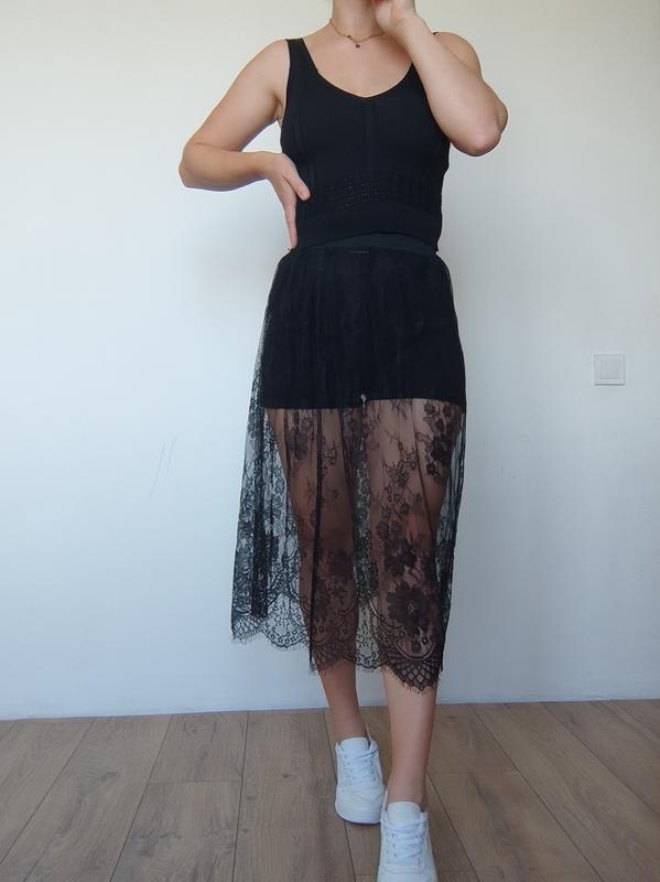 Женская черная кружевная юбка/ полупрозрачная/ сеточкой. Кружево мягкое и приятное. Состояние - новый. Размер универсальный S-M-L. Одетая на М. Замеры: ПОТ 31 см (тянется до 40 см), длина 85 см. Одетая на параметры: 94 - 80 - 99 см, рост 167 см. Без шорт.