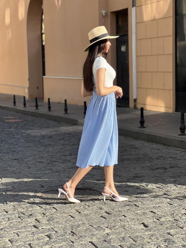 Спідниця гофре Ідеальний вибір для створення ніжного та стильного образу. Гарно поєднується з майкою, футболкою, блузою, сорочкою, светром, кожанкою, піджаком. Стильно виглядає як під низький хід на кожен день, так і під каблук на вечірку. Виконана у формі силуету трапеція, модель з талією на резинці. Ошатно виглядає, не просвічується, робить гарну фігуру та добре тримає форму. Спідниця лише з одним швом, можна носити шов ззаду або збоку. Матеріал: креп кристал гофре На бавовняній основі! Розміри: 42-44, 46-48, 50-52, 54-56 Кольори: мокко, шоколад, чорний, графіт, блакитний
