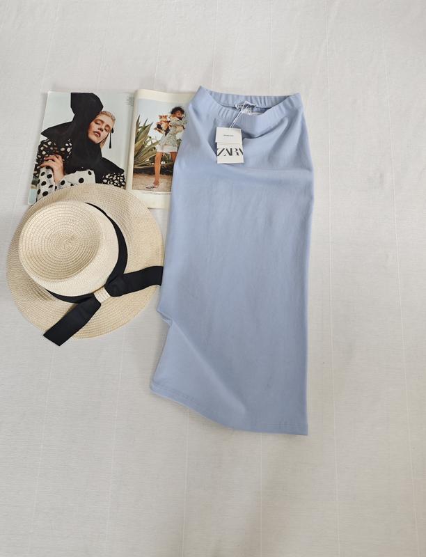 🌿голубая юбка-миди от Zara из плотного трикотажа, красиво тянется Размер:M Замеры:ПОТ 29 см, длина 71 см